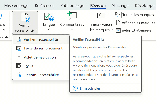 Pour en savoir plus, référez-vous à la documentation officielle : LibreOffice, vérification de l’accessibilité.